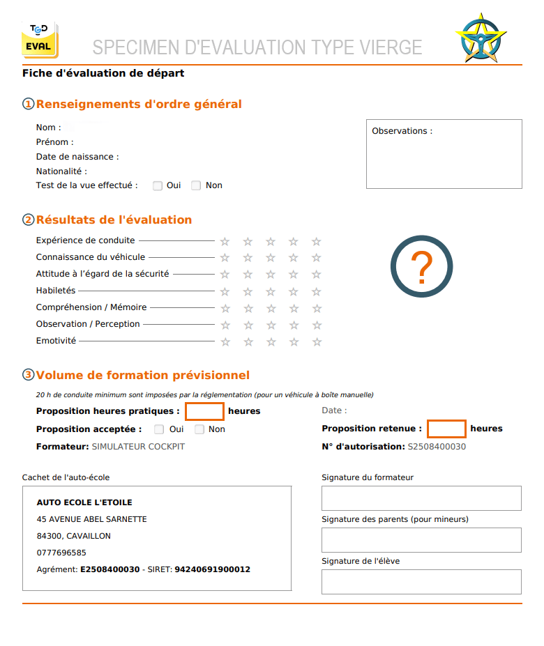 Préalablement à tout contrat en auto-école, il est obligatoire d'effectuer votre évaluation de départ.